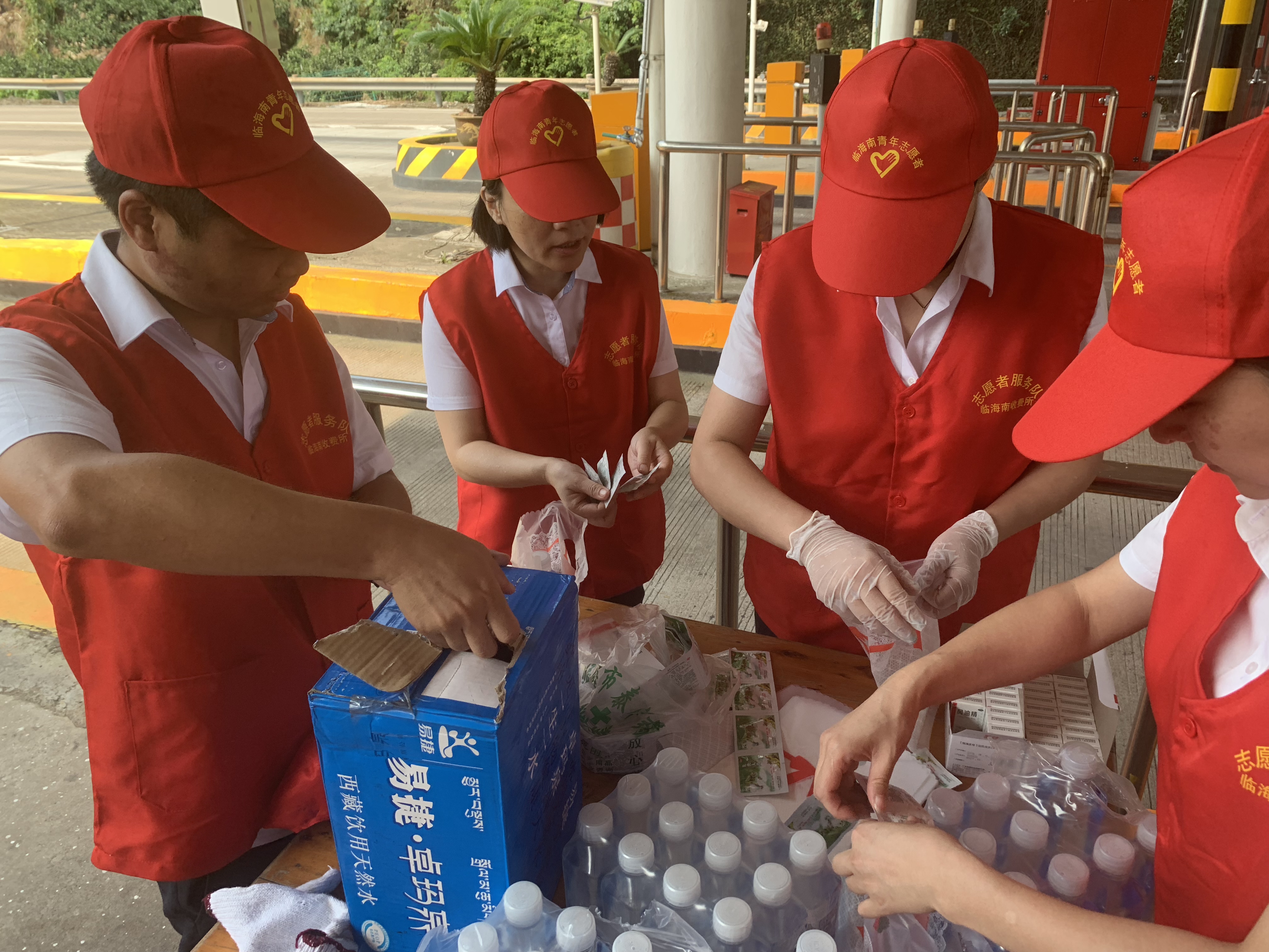 服務(wù)在崗,情系災(zāi)區(qū) ——臨海南收費所組織開展“獻(xiàn)愛心”活動 8月14日中午,臨海南收費所車道安全島內(nèi)搭起臨時愛心服務(wù)臺,準(zhǔn)備了禮品袋、礦泉水、風(fēng)油精、人丹等物品,為過往司乘人員免費提供解暑用品。 高溫天氣中,該所員工身穿耀眼的“紅馬甲”,面帶微笑,顯得格外耀眼動人。