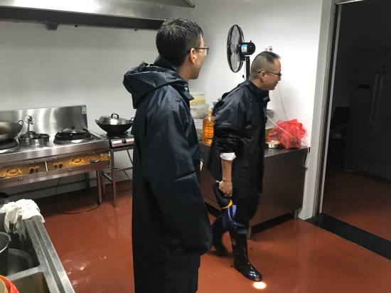 凌晨2點10分,水位猛漲至70厘米,考慮到人員安全,孫明偉立即組織人員叫醒在寢室休息的員工,短短5分鐘內,將大家全部安全撤離到辦公樓。行政人員紛紛將寢室讓給第二天早上上崗的同事,自己卻整宿未睡,時刻關注水位上漲情況,直到天亮潮水退下,大家才在自己辦公室凳子上、會議室椅子上稍作休息。