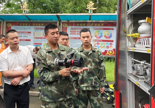 圖為培訓現(xiàn)場 活動現(xiàn)場,黃巖消防大隊官兵向參加活動的員工展示消防車上的消防裝備實物,講解裝備使用功能以及消防車基本構造,耐心地解答員工提出的問題,并當場進行專業(yè)的消防水帶連接滅火演示。之后,臺州收費所員工開展消防水帶連接滅火演練,獲得黃巖消防大隊官兵的肯定,同時針對演練中存在的問題及不足給出專業(yè)性的指導意見。