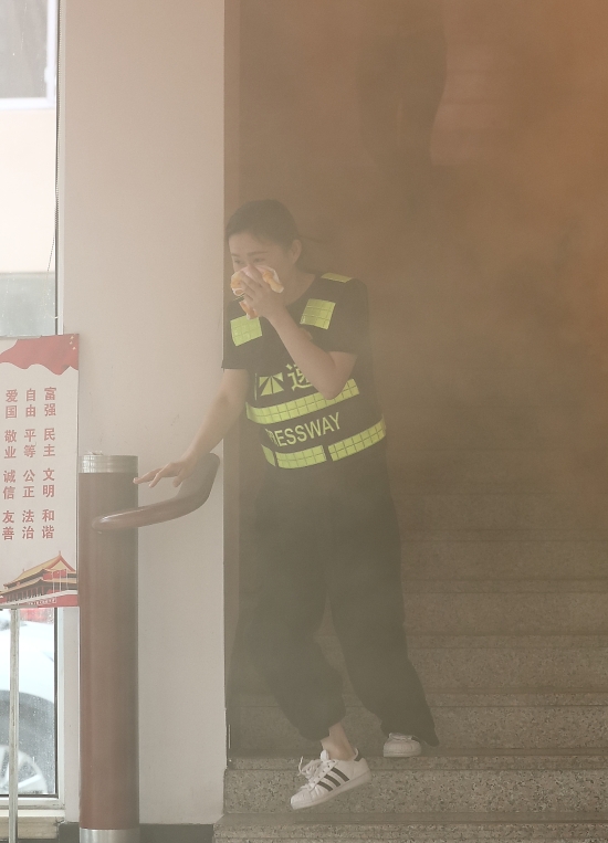 講座結(jié)束后,該所隨即開展火災(zāi)逃生演練。員工發(fā)現(xiàn)火情立即撥打報警電話,參加演練人員聽到警報聲后,迅速拿起打濕的毛巾捂住口鼻,按照正確逃生動作要領(lǐng),從樓上彎腰低姿扶墻往樓下跑,大家有序疏散至安全地帶。