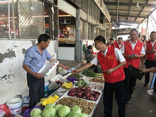 圖為志愿者在菜場宣傳垃圾分類 志愿者們特地選取菜市場、商鋪等人多且容易產生垃圾的地方,向店主和商販們宣講環境公害引發的負面后果及如何處理平時的生活垃圾,他們結合宣傳冊通俗、耐心地講解生活垃圾要從源頭開始分類投放:干濕要分開,對剩菜剩飯、瓜皮果殼等易腐垃圾要瀝干水分,投放后要蓋好垃圾桶,免得蚊蠅滋生;紙類、飲料瓶、金屬等有再生利用價值的要放在可回收的垃圾桶里;對電池、電子產品、殺蟲劑、油漆桶等含有害化學物質的要單獨放;剩余的作其它垃圾處理。