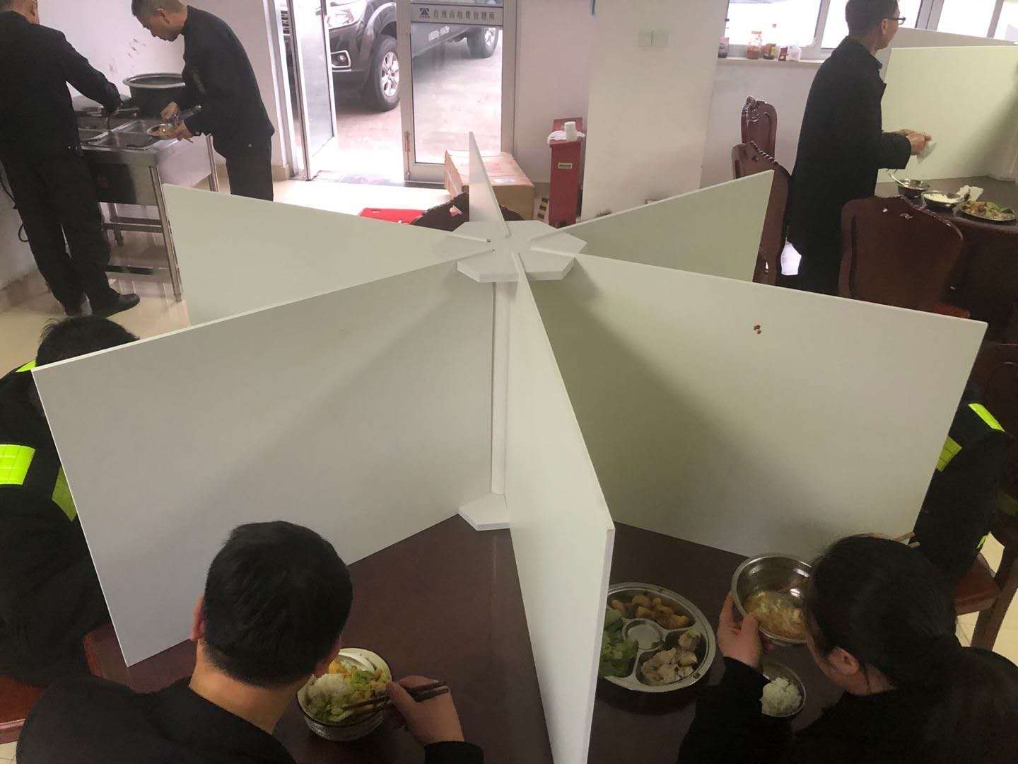 這是疫情期間,為了員工的安全健康,讓員工吃上安心餐,該所對(duì)餐桌進(jìn)行布局,將餐桌用塑料擋板隔成六個(gè)區(qū)域,員工在每個(gè)區(qū)域內(nèi)用餐,這樣可以避免就餐說(shuō)話,減少相互間的交流。這是該所做好疫情防護(hù)的一項(xiàng)新舉措。