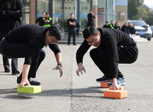 本次活動分團(tuán)隊(duì)賽和個(gè)人單項(xiàng)賽,團(tuán)隊(duì)賽包括“二龍戲珠”“背靠背”“集體跳繩”“拔河”4個(gè)項(xiàng)目;個(gè)人單項(xiàng)賽由“摸石過河”“夾乒乓球”“跳繩”“定點(diǎn)投籃”“俯臥撐”“仰臥起坐”6個(gè)項(xiàng)目組成。每個(gè)賽場氣氛活躍,加油聲、喝彩聲此起彼伏。其中拔河比賽最為熱鬧,參賽隊(duì)員個(gè)個(gè)緊握長繩,蓄勢待發(fā),隨著裁判的一聲哨響,他們在“一二三”的口令聲中卯足勁、齊發(fā)力,場邊助威聲響成一片。在“摸石過河”比賽中,身體的任何部位不得直接觸碰除河石之外的支撐物,該項(xiàng)目著重在手腳配合,在“河中”巧妙地移動石頭,直至到達(dá)終點(diǎn)。
