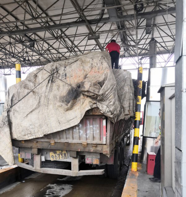 貨車被卡收費(fèi)站出口 收費(fèi)員經(jīng)歷驚魂一刻
