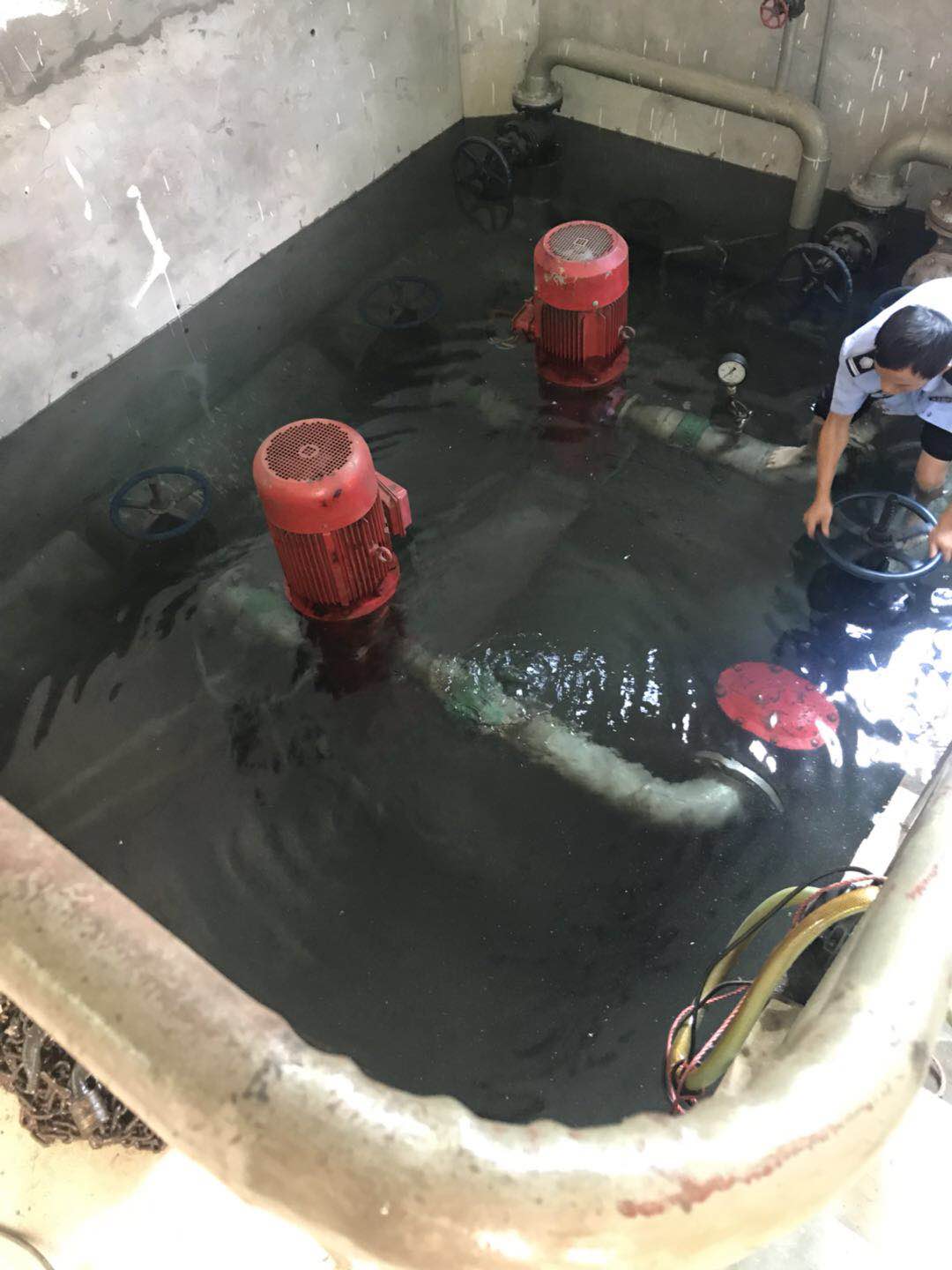 早上7:30分左右,該所執(zhí)勤一隊(duì)隊(duì)員陳旦平巡檢北泵房時(shí),發(fā)現(xiàn)北泵房漏水已齊膝蓋深,情況緊急,隊(duì)長(zhǎng)李新波和電工湯寧光馬上趕到現(xiàn)場(chǎng),此時(shí)的北泵房早已成了小水池。
