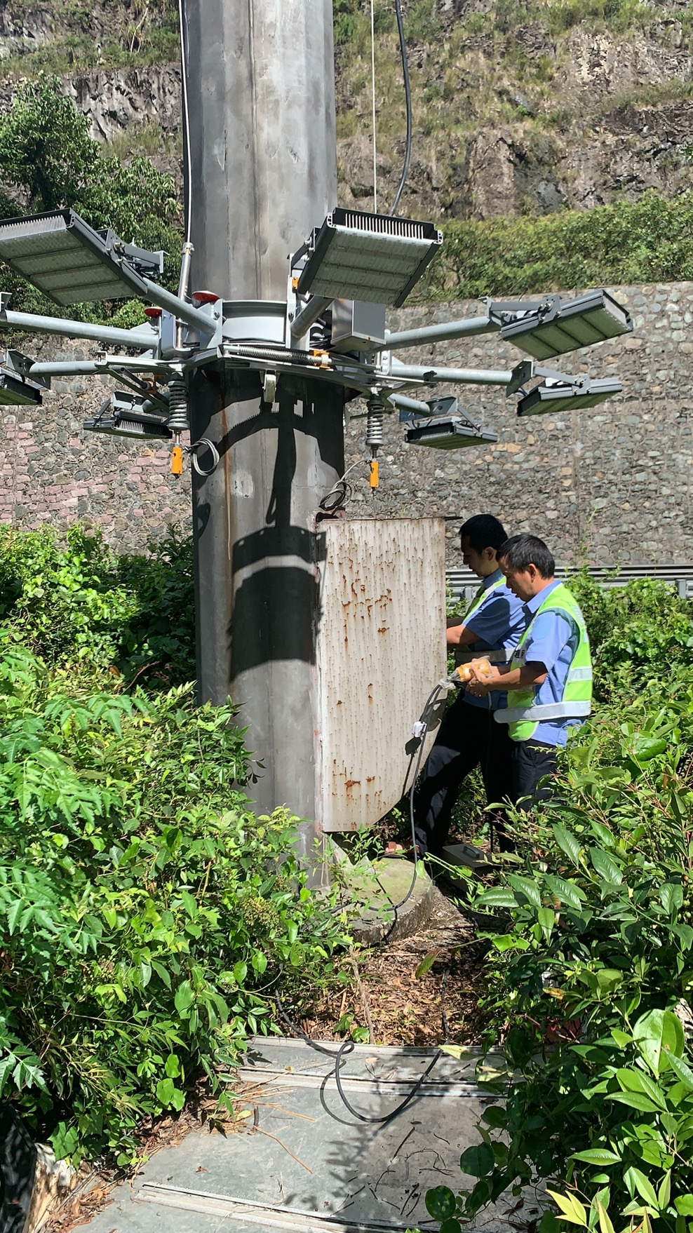 今年第4號臺風“黑格比”于8月4日3點30分前后在溫州樂清沿海登陸。8月3日上午,接臺風預警通知,大溪嶺隧道所立即落實防臺應急措施,準備抗臺物資、備足油料,檢查車況、發電機組、山上堅井、隧道內設備設施、隧道高邊坡,以及擋墻等,清除山上水溝雜物、放下高桿燈等等。