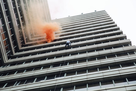 上圖為高空墜落逃生演練現場