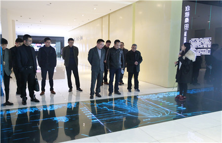 圖為考察團觀看東部新區墻暮宣傳影片