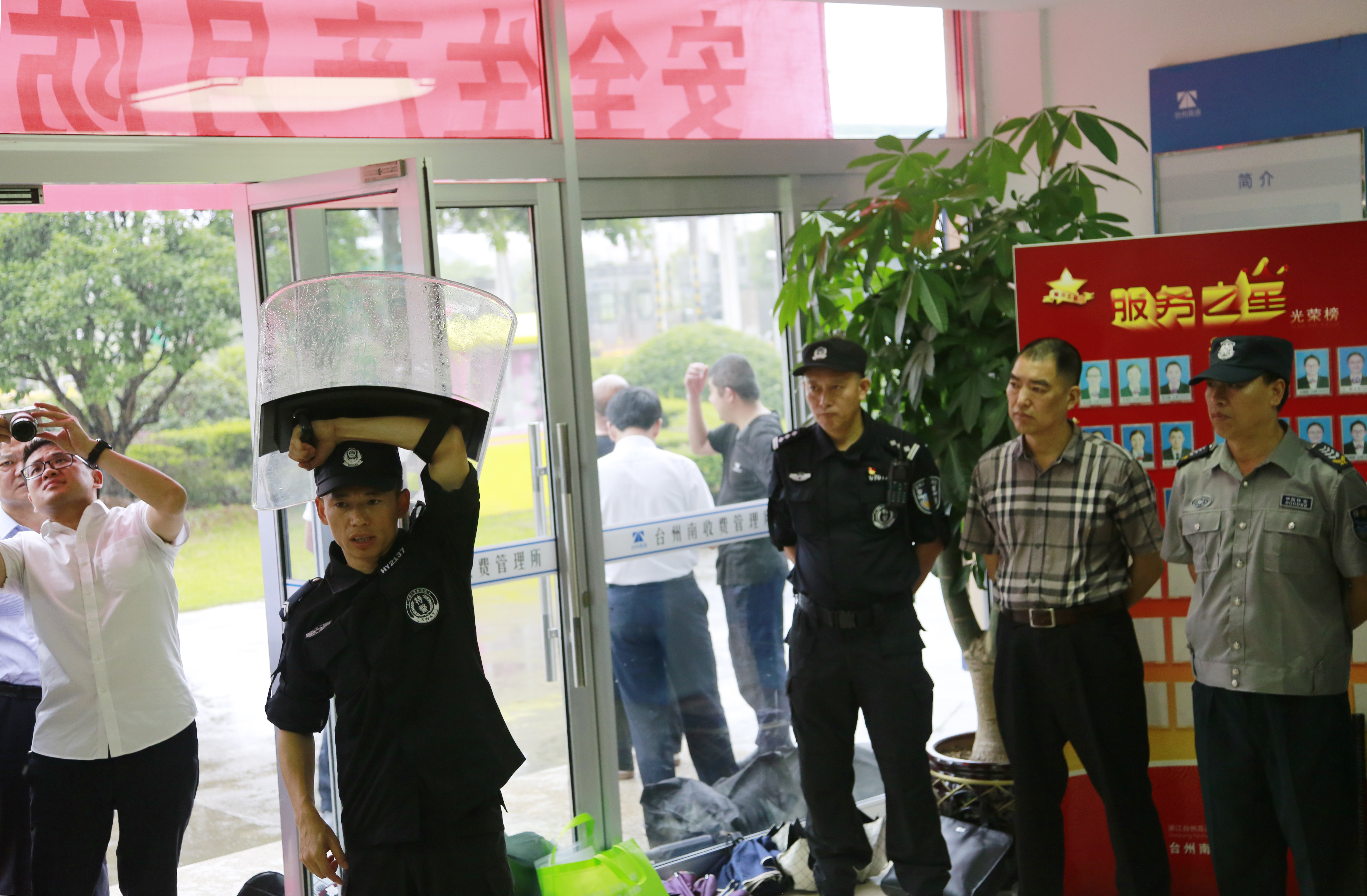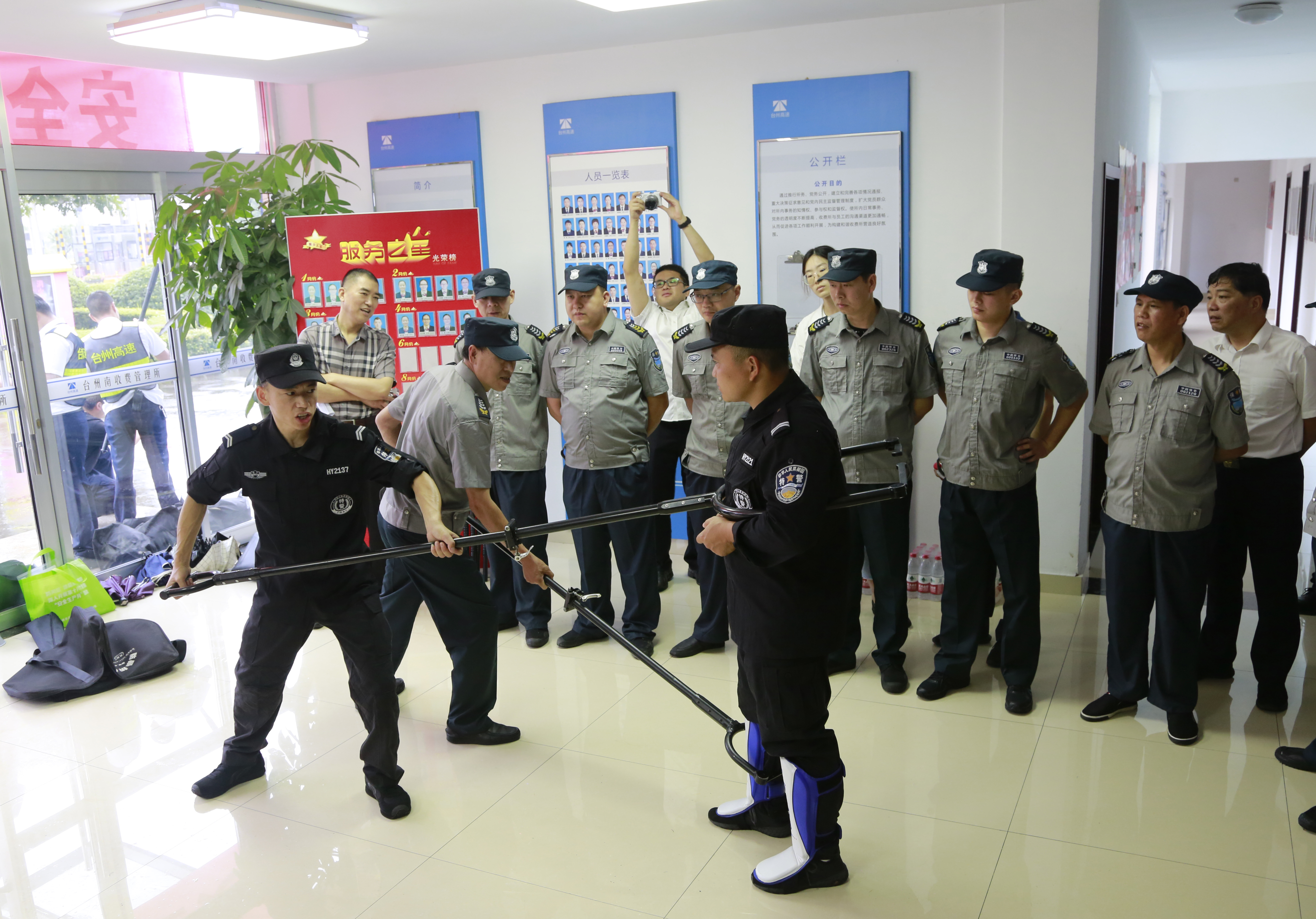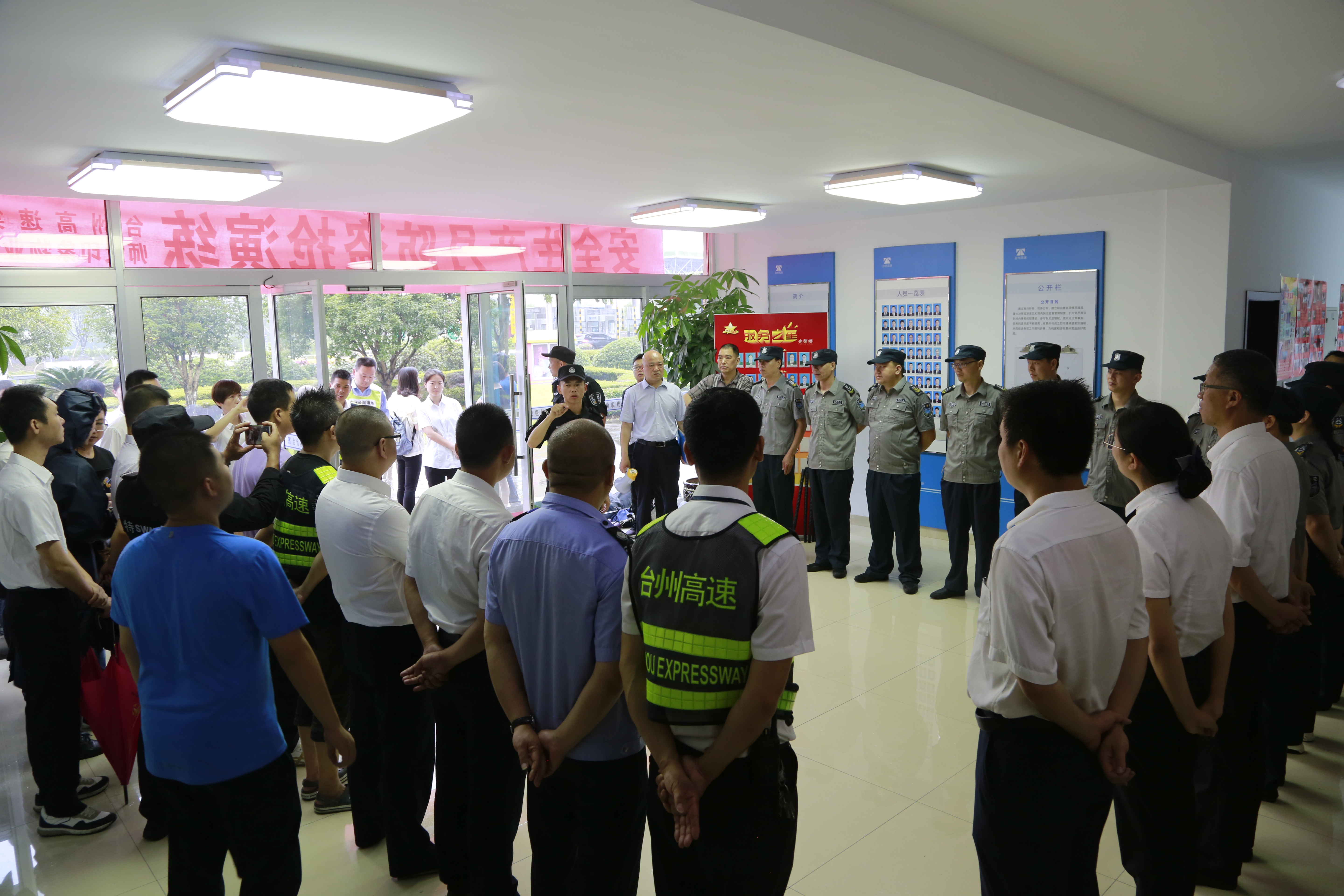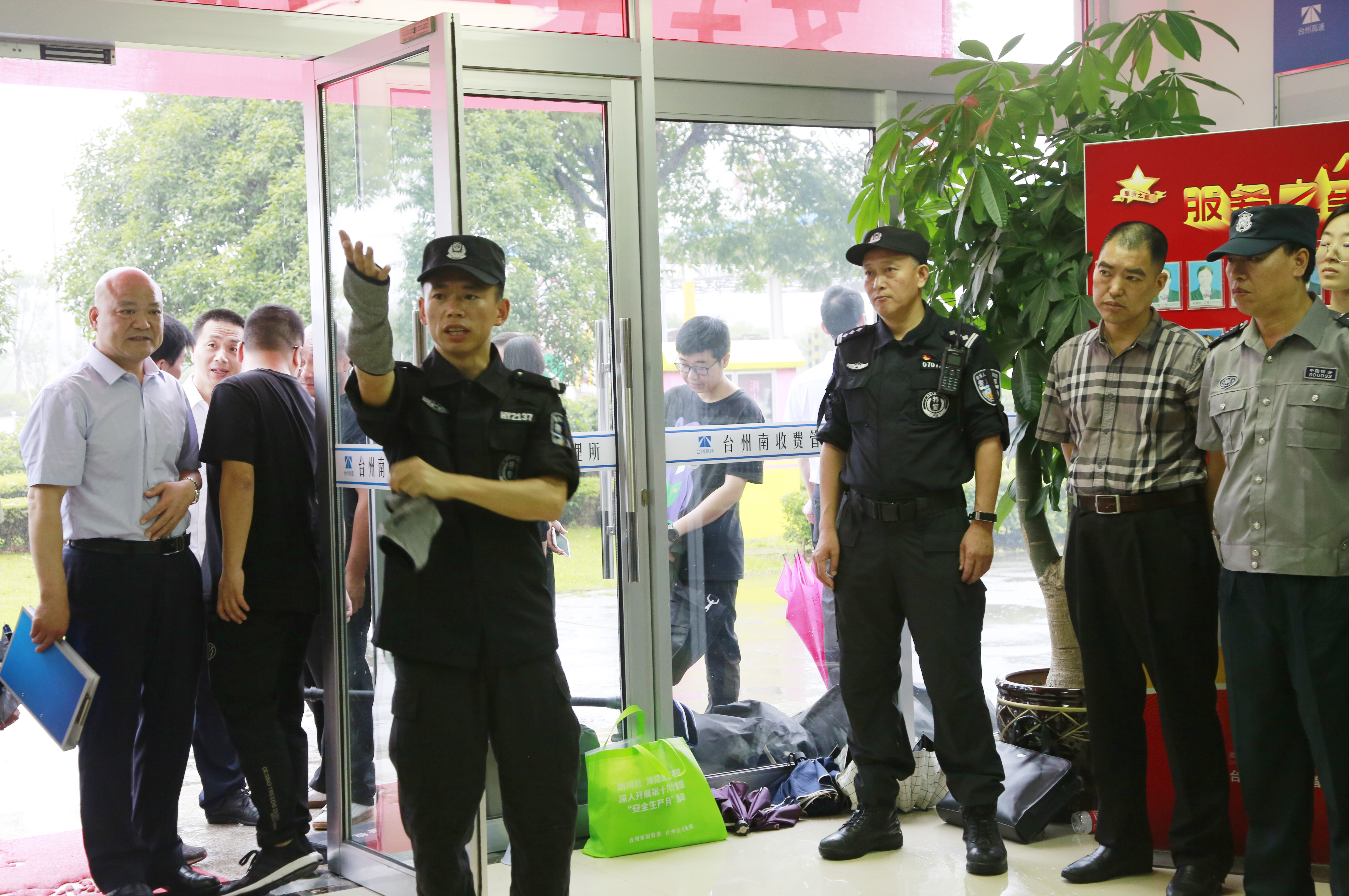 臺州高速集團組織開展防盜搶應急演練活動 6月25日上午,臺州高速集團在臺州南收費所組織開展防盜搶應急演練活動。各所、中心、子公司以及浙師大印象物業臺州分公司相關人員參加活動。集團副總經理章海峰、安全總監項同富到場觀摩演練。