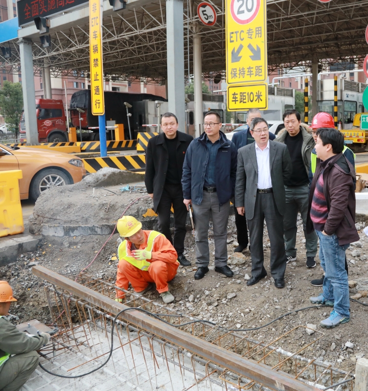 圖為陳文波在收費所混合車道施工現(xiàn)場了解施工進展情況