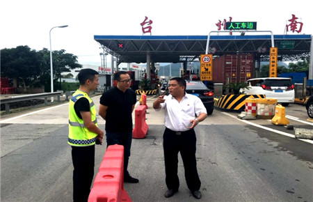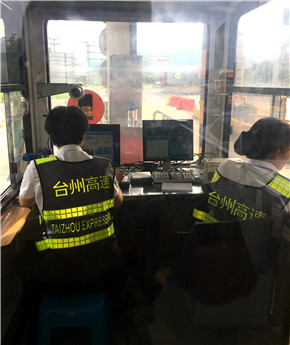 圖為一個崗亭同時承擔發卡和收費雙職能 信息就是命令,臺州南收費所第一時間將ETC切換成了人工收費模式。但是增加了一個車道仍是無法緩解這排山倒海之勢的車流量,最高峰時,該路段一度排起了約10公里的長龍,密密麻麻的車輛都在等著出站,保暢群里告急聲聲。臺州南收費所所長王益民坐不住了,一邊去電維養中心“能否將進口的一個車道改成出口車道?”,一邊帶領行政人員趕往副站協助分流。針對進口人工車道的電腦被收費程序占用,提前根據車型在通行卡上寫好類別,安排人員在車道上進行發放。不斷奔跑著發卡,數不清的來來回回,全心投入在保暢工作中的員工們竟不覺得乏累。同時,還特地在外廣場擺放友情提示牌,讓過往司乘可以多渠道提前了解通行信息。此情此景,不少過往司乘人員都不由地伸出了大拇指,為臺州高速創新的收費模式和貼心的文明服務點贊。