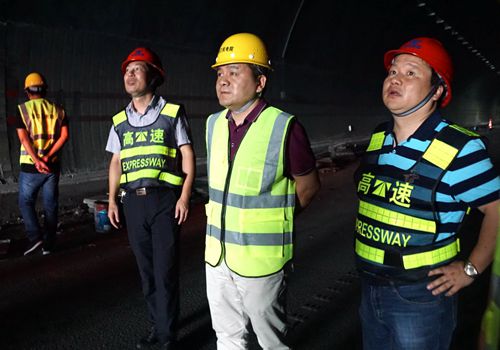 8月8日下午,省公路局高速辦副主任李飛泉、省高速辦養護監管科科長侯訓田在集團總工程師江輝及市公路局領導的陪同下,赴大溪嶺-湖霧嶺隧道機電改建施工現場指導工作,查看施工進展情況。
