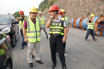 圖為省公路局高速辦副主任李飛泉在現場指導工作