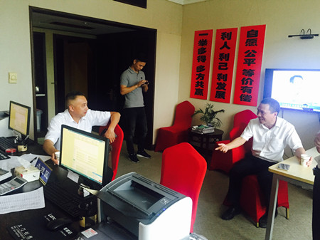 圖為集團副董事長、總經(jīng)理張建平向股東耐心解釋稅收優(yōu)惠政策 在三門收購點,遇到一位正猶豫不決的股東,張建平耐心地向他解釋了相關(guān)政策,直接明了地消除他內(nèi)心顧慮,最后股東滿意地簽署了股權(quán)轉(zhuǎn)讓協(xié)議。 楊靜
