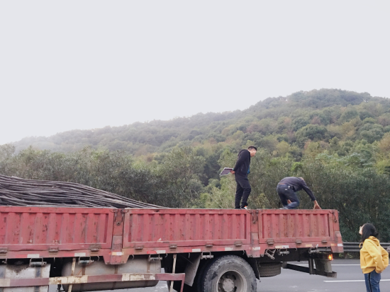 下午4:00,隧道外的小電纜已經裝好,經施工隊提醒,黃土嶺隧道內還有拆下來的電纜,考慮到不給施工方添麻煩,小分隊3人在黃土嶺隧道廣場等候,資產管理部林軍叮囑收購方只要將隧道內同類的小電纜裝上車即可。 下午5:10,裝舊電纜的車輛打算開往院橋磅秤站時,經檢查發現裝貨人員將大電纜誤裝上了車,收購老板說:“都裝上車了,大電纜沒幾根,就按100m算吧。”小分隊堅持原則,拒絕了老板的估算。而四五噸的電纜,一卸一裝起碼要3個小時,眼看天快黑了,林軍想到了個辦法,通過整車過磅,取出大電纜,測量出米數,再根據每米的重量算出價格,最后整車重量減掉大電纜重量就是小電纜的重量,大家一致通過。 傍晚6:00,卸小電纜,取大電纜,測量長度、記錄米數,燈光不夠亮,大家手機手電筒來湊,饑餓、灰塵、危險已經拋之腦外,小分隊奔波在幾噸的電纜中,看著,測著,記著。 晚上8:00,分類、測量、換算完畢,通過大家的努力,終于量出了大電纜共240m,挽回差價 1萬元多。 曾莉莉