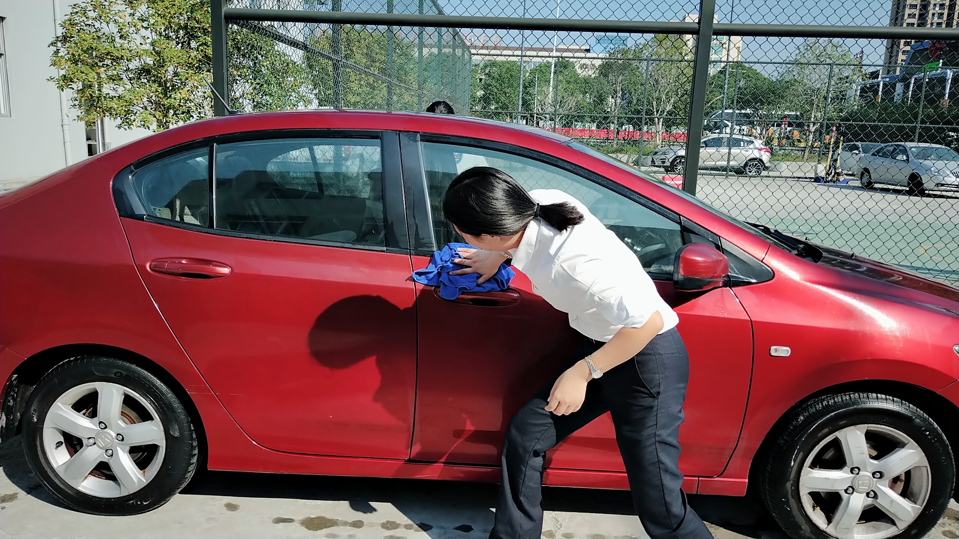溫嶺西支部書記周超帶領黨員服務群眾 當天上午,活動一開始,前來洗車的車輛絡繹不絕。在支部書記周超的帶領下,五名黨員便開始分工合作。兩名男同志負責沖水、上泡沫、擦洗、再沖水,兩名女同志負責擦干和吸塵器清掃內室,還有一名男同志負責開車挪車,需要清洗的車輛一輛接著一輛,黨員同志們顧不得擦干身上的被水濺濕了的衣服,忙得不亦樂乎。看著被洗得一塵不染的車,大家都不約而同地會心一笑。