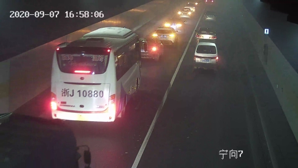 車子剛進入隧道,火眼金睛的中控員徐海源立即察覺,鎖定該畫面,經(jīng)過仔細辨認(rèn),該車沒有火光源,可能是車輛故障導(dǎo)致的。由于貨車不停地冒出濃煙,散發(fā)的濃煙彌漫在整個隧道里,造成隧道內(nèi)的車輛視線不清,人員呼吸困難,后方途經(jīng)車輛紛紛打開雙閃燈,或緩行、或停車、或避讓,一時間,交通秩序混亂,大量的車輛滯留在隧道里,而后方來車越來越多,情況越來越緊急。中控員見狀,第一時間向監(jiān)控中心匯報情況,監(jiān)控中心要求密切關(guān)注該輛車的行駛情況,同時,把該情況報告給執(zhí)勤隊長蔡星,他要求中控員打開寧向排風(fēng)扇,正向排風(fēng),疏散濃煙,同時做好應(yīng)急準(zhǔn)備工作。