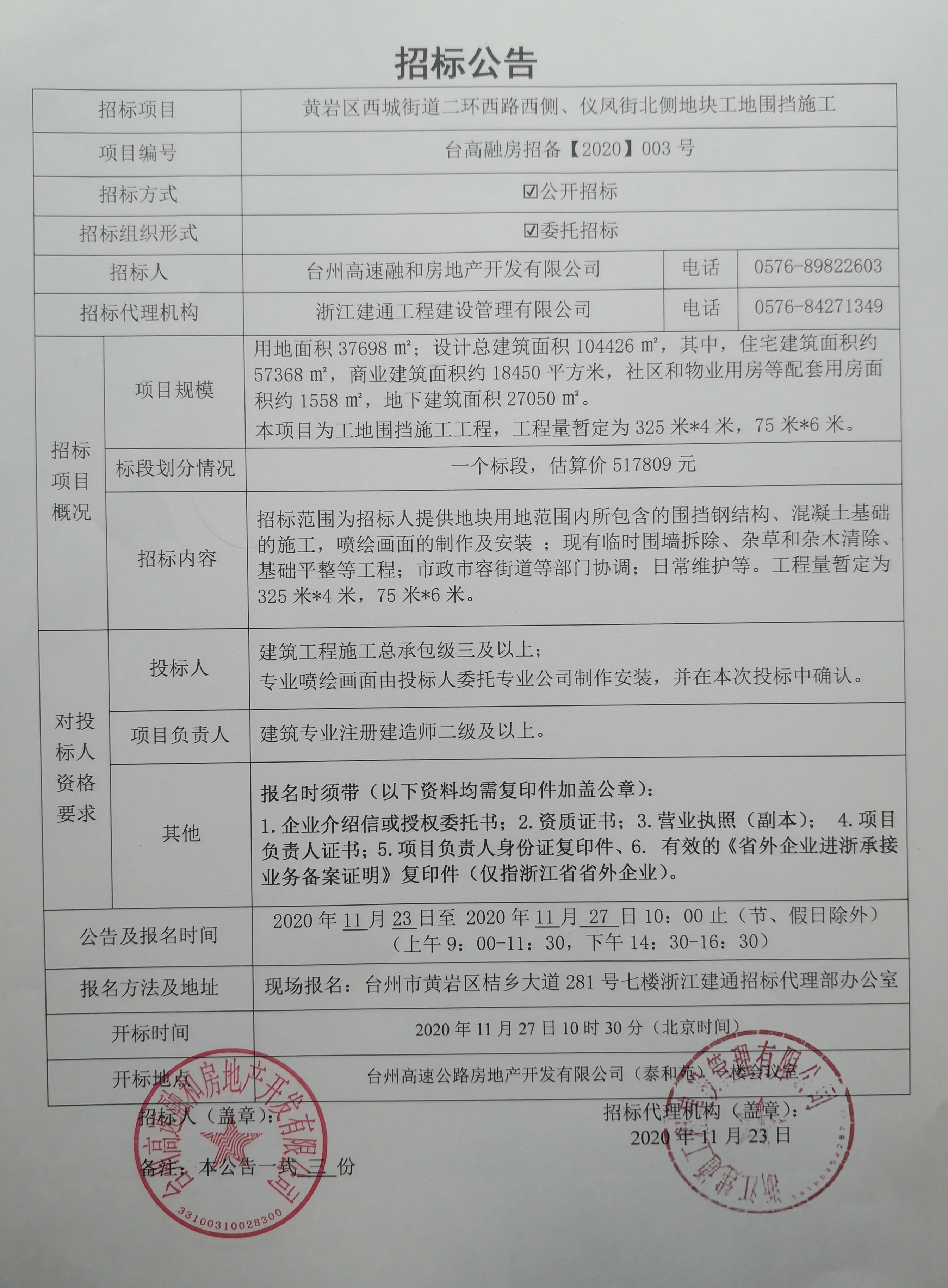 發(fā)布日期:2020-11-23 來源:浙江臺(tái)州高速公路集團(tuán)股份有限公司 瀏覽次數(shù):38662 次