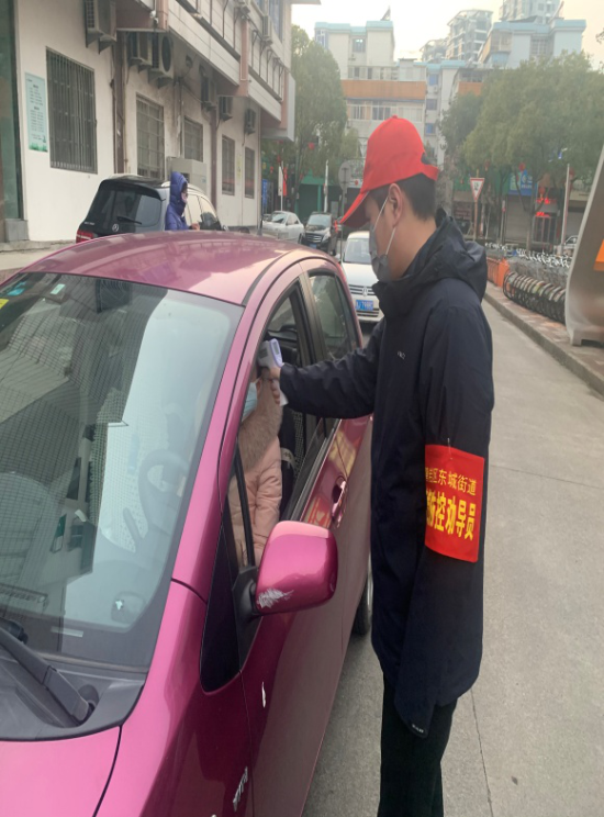黨員丁聰,積極參與泰和苑小區的卡點測溫志愿服務;