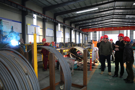 圖為在T梁預制廠觀看工人綁扎鋼筋