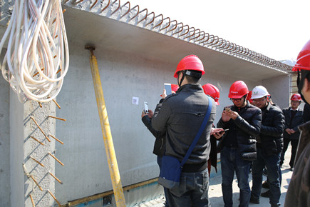 圖為參觀人員體驗施工全過程二維碼控制功能