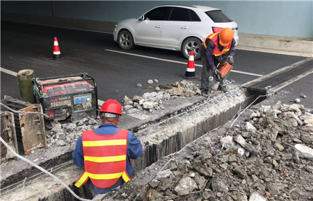 圖為施工現(xiàn)場 臺州市內(nèi)環(huán)路(10+170~8#立交)工程于2018年3月10日竣工驗收,目前處于兩年的保修期范圍內(nèi),由于框架橋的結(jié)構(gòu)特性和當?shù)氐牡鼗攸c,站西大道下穿跳車的問題一直無法得到有效解決,而這也成了影響內(nèi)環(huán)路行車舒適度的首要問題之一。早在2018年6月12日,市政公司就組織施工單位對當時的路面進行了銑刨后重鋪瀝青路面的施工處理,但是經(jīng)過9個月的運行沉降后,橋頭跳車問題再次出現(xiàn)。本著有險必修,有錯必究的原則,市政公司再次組織施工單位對該段路面的維修問題進行了現(xiàn)場論證,根據(jù)論證結(jié)果進行了修復(fù)性施工。