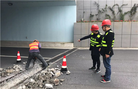 工程質(zhì)量重于泰山 打造精品真抓實干 ——內(nèi)環(huán)路站西大道下穿跳車整治正在進行 3月19日上午,內(nèi)環(huán)路站西大道下穿由西往東方向跳車處被挖開一條口子,工人們正熱火朝天地進行施工,整治該處的跳車問題,市政公司工程現(xiàn)場管理人員第一時間趕到施工現(xiàn)場檢查安全防護,嚴把施工質(zhì)量,監(jiān)督工程進度。